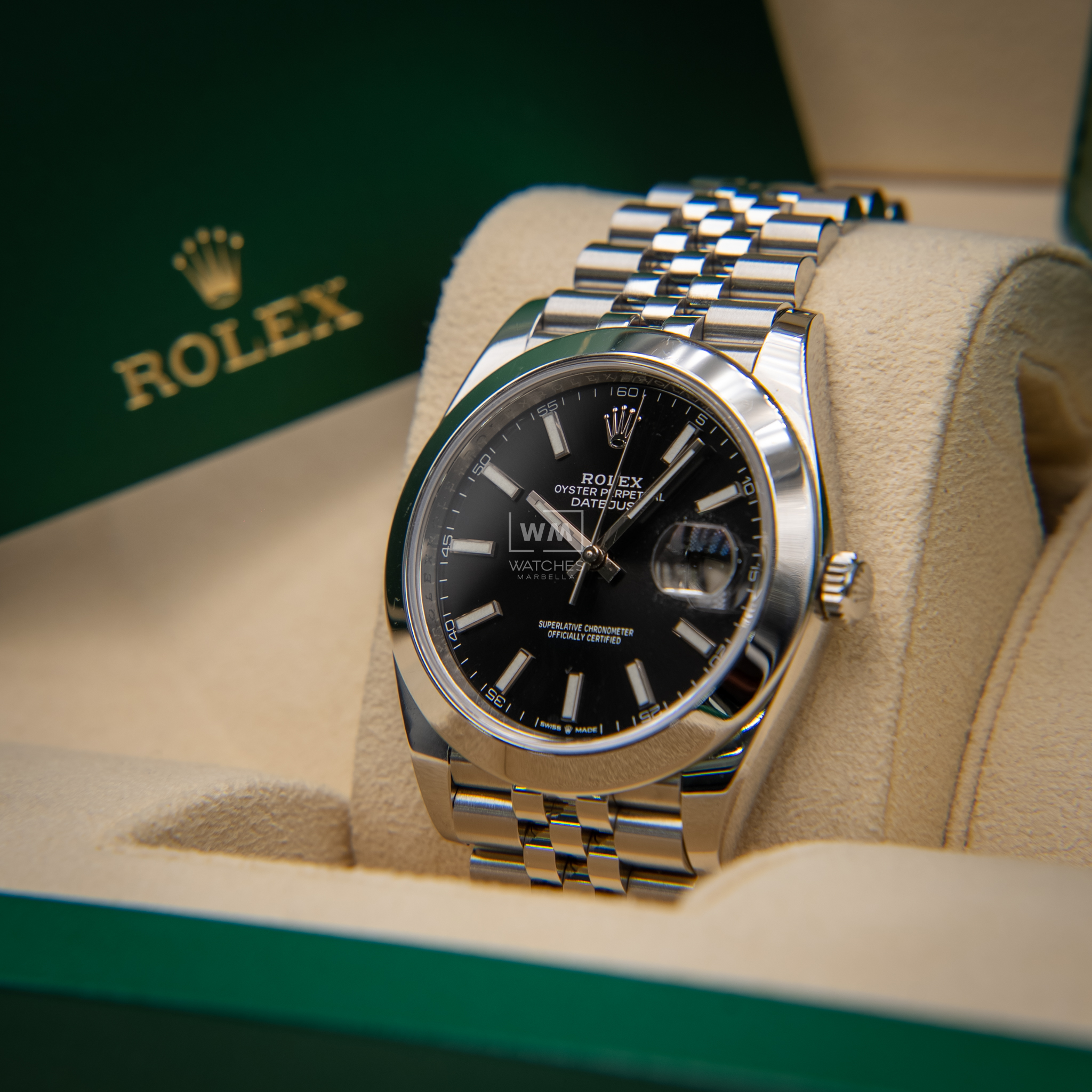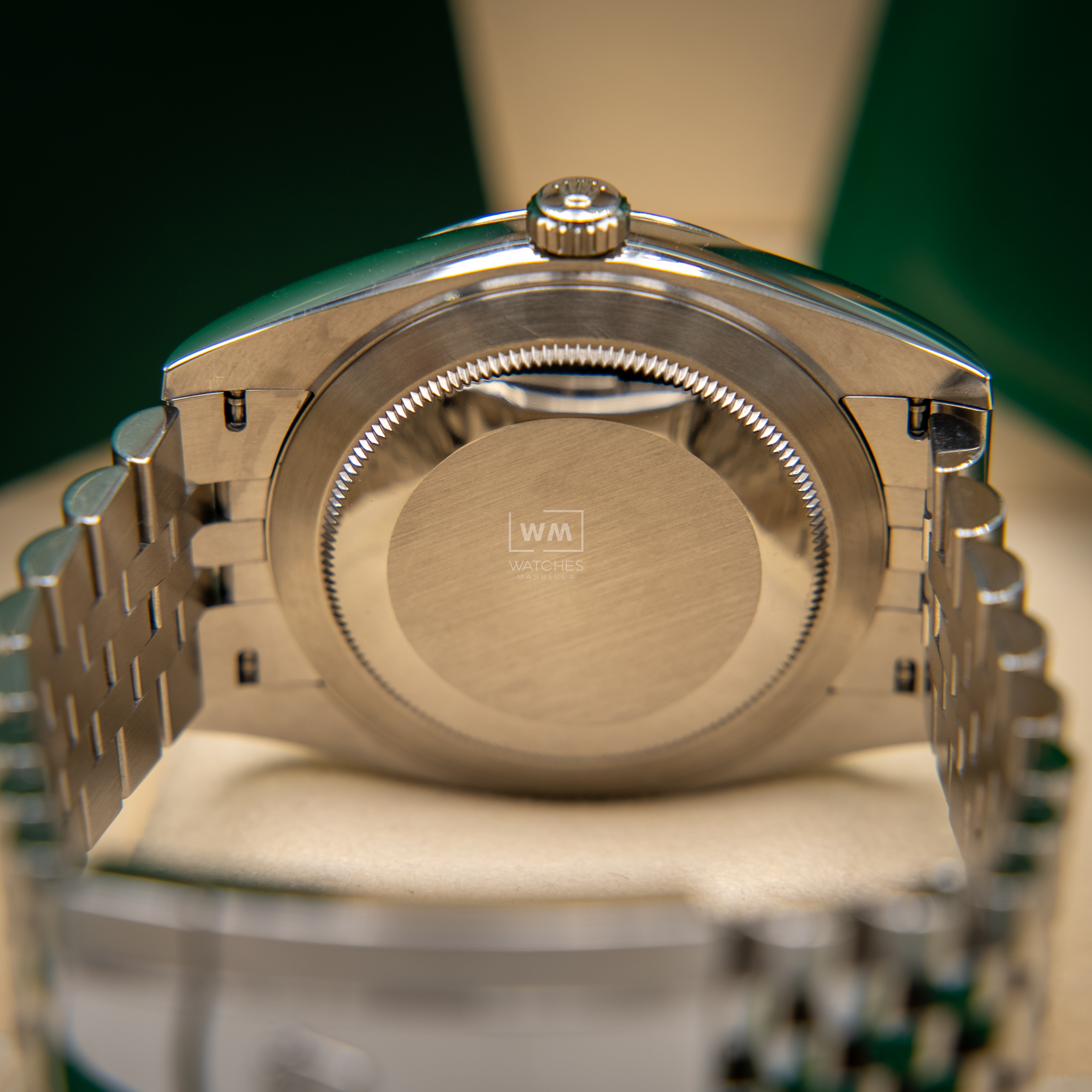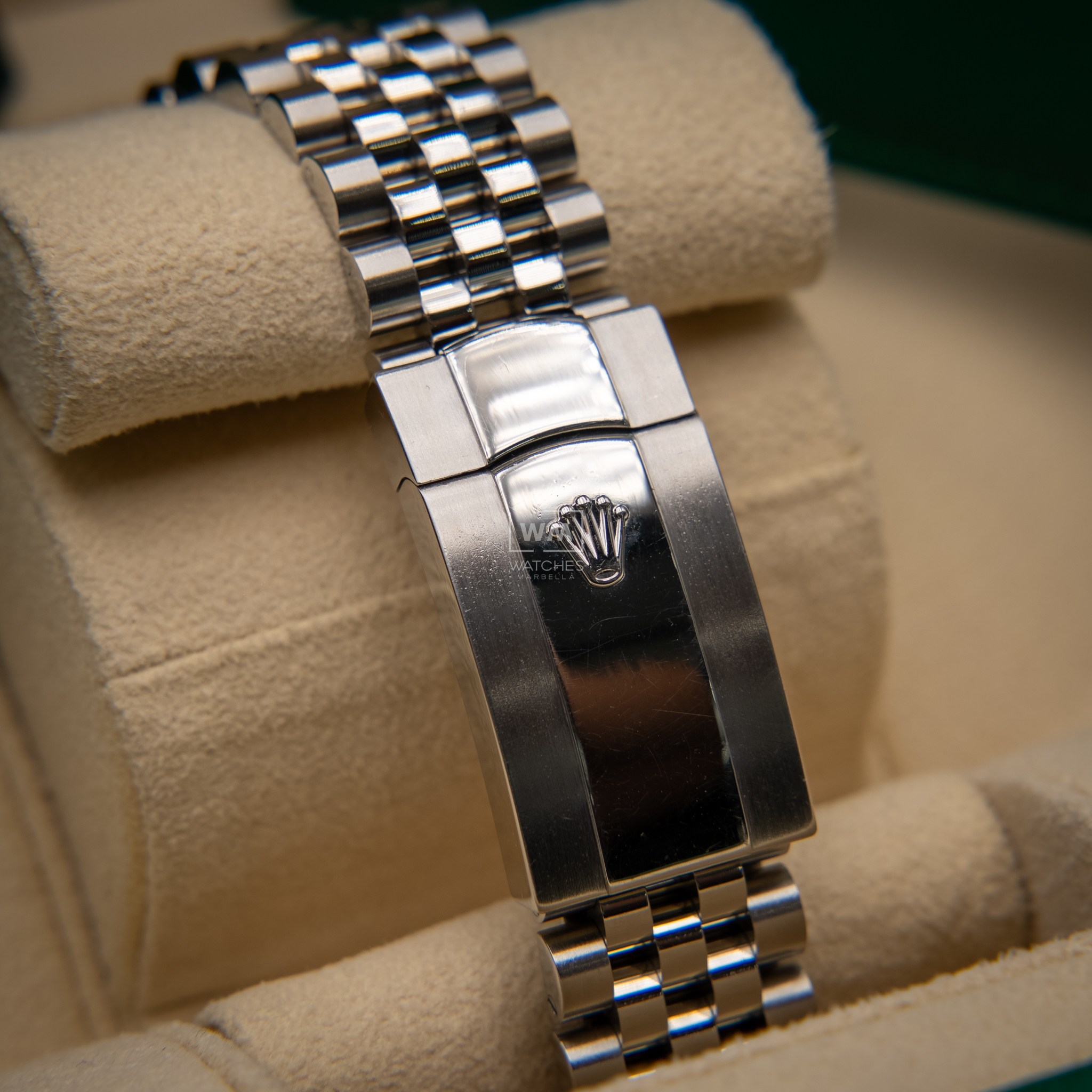 NO vendemos réplicas. Los relojes clasificados como «sin usar» incluirán la caja original, el manual de instrucciones y la tarjeta/certificado de garantía (a menos que se indique lo contrario). Los relojes clasificados como «pre-owned» (de segunda mano) son también verificados como auténticos y en excelente estado de funcionamiento, sin piezas de recambio no originales. Para relojes que no incluyan su caja original, Watches Marbella proporcionará una caja de la tienda.