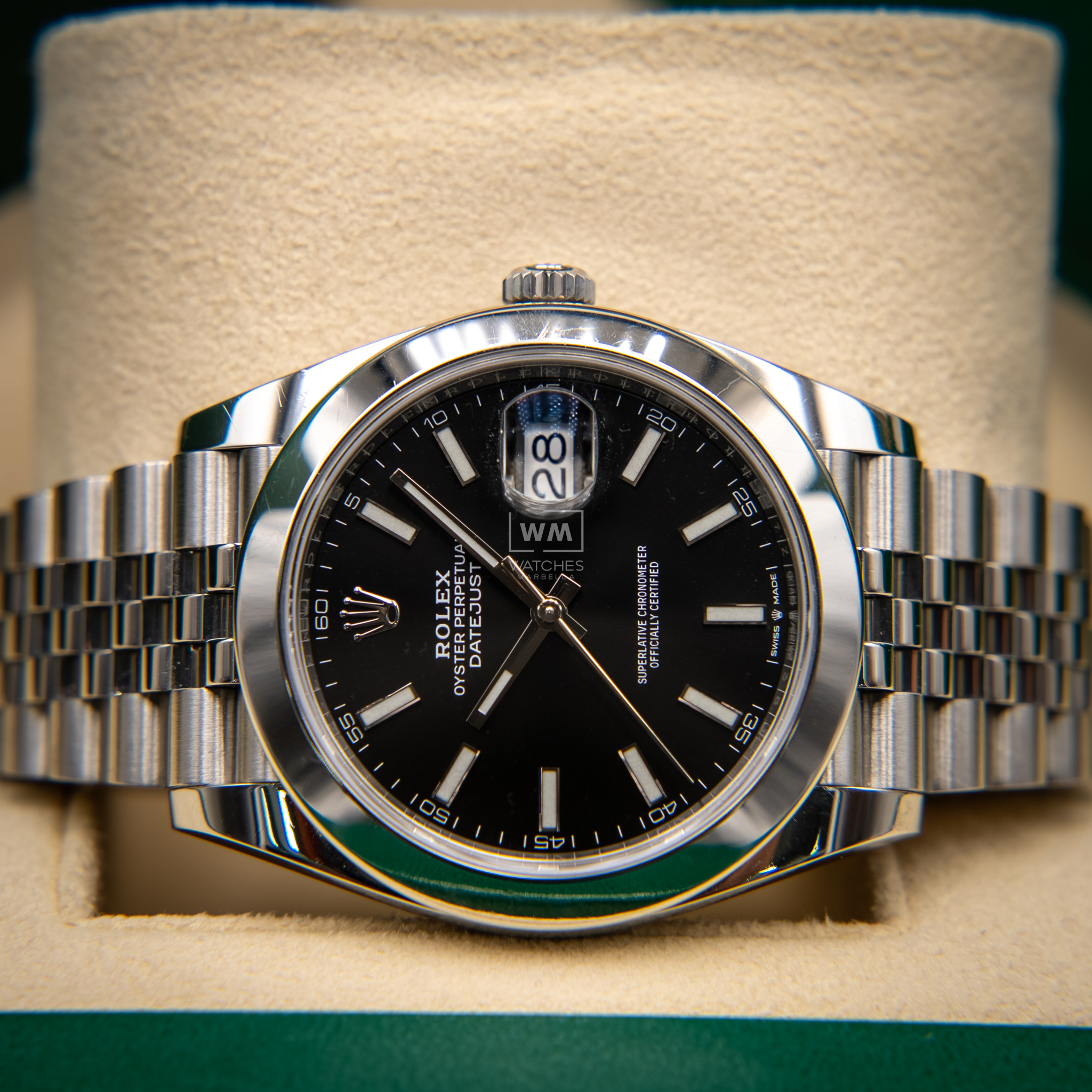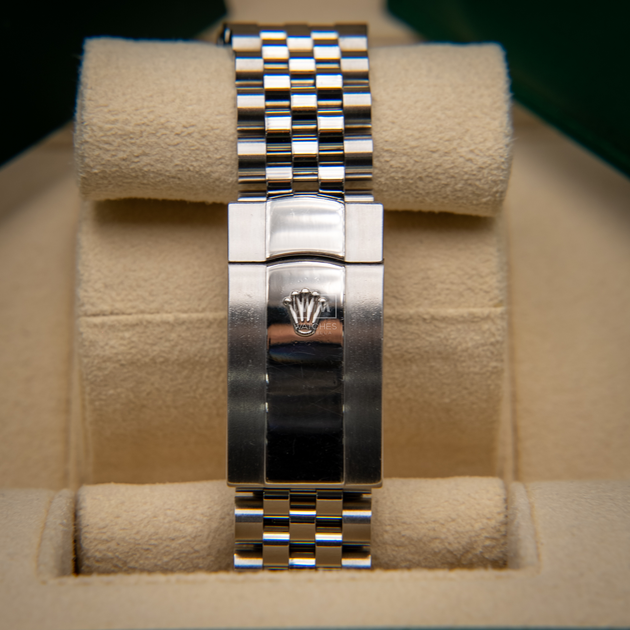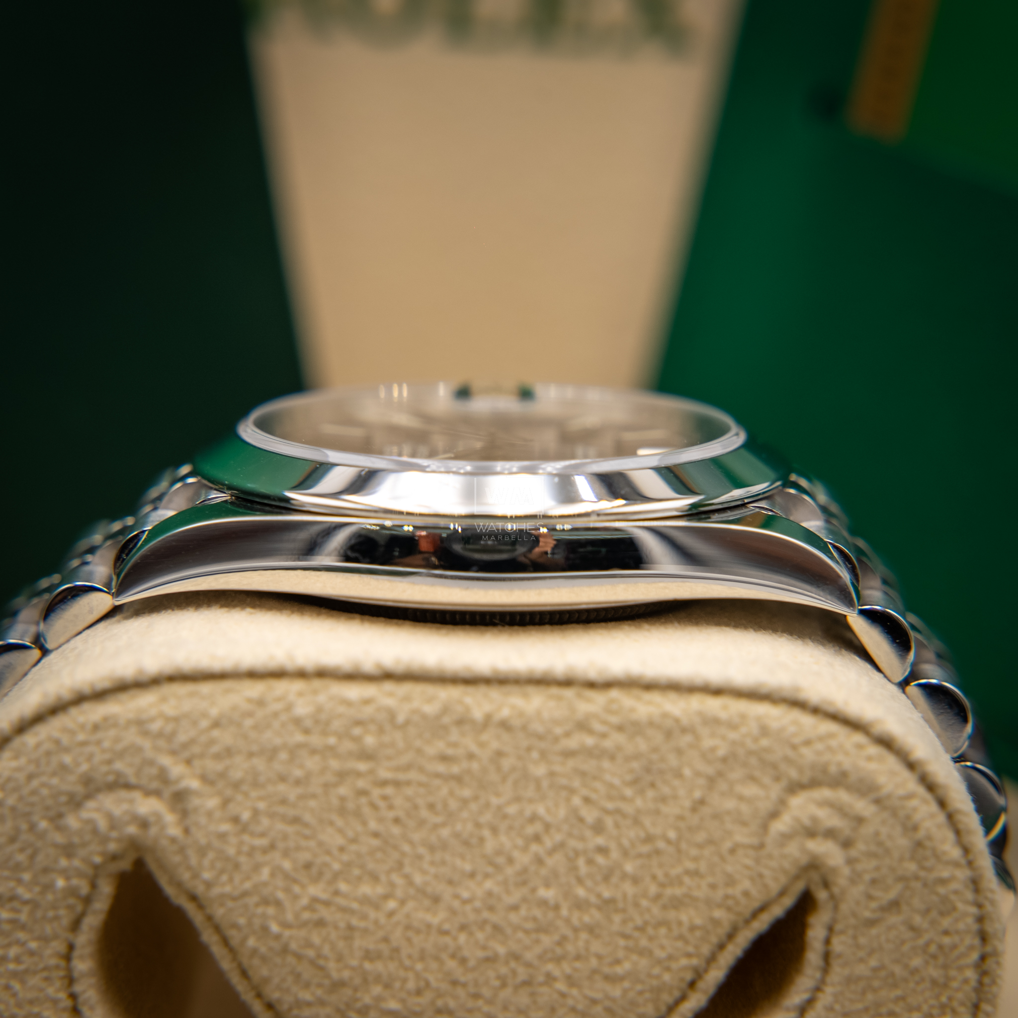 NO vendemos réplicas. Los relojes clasificados como «sin usar» incluirán la caja original, el manual de instrucciones y la tarjeta/certificado de garantía (a menos que se indique lo contrario). Los relojes clasificados como «pre-owned» (de segunda mano) son también verificados como auténticos y en excelente estado de funcionamiento, sin piezas de recambio no originales. Para relojes que no incluyan su caja original, Watches Marbella proporcionará una caja de la tienda.