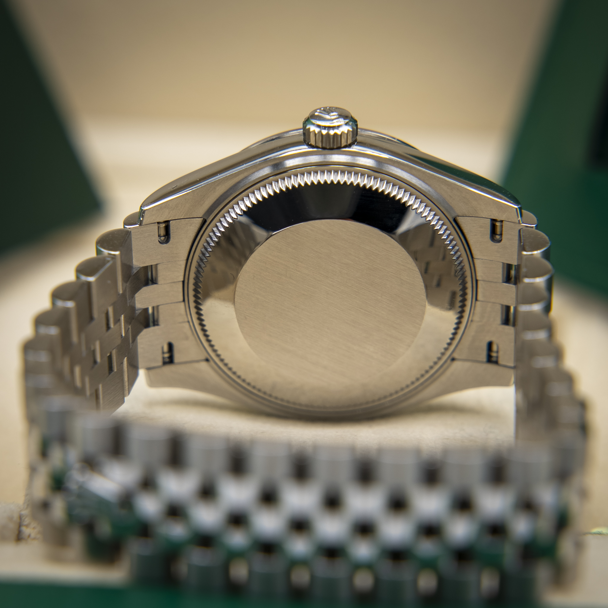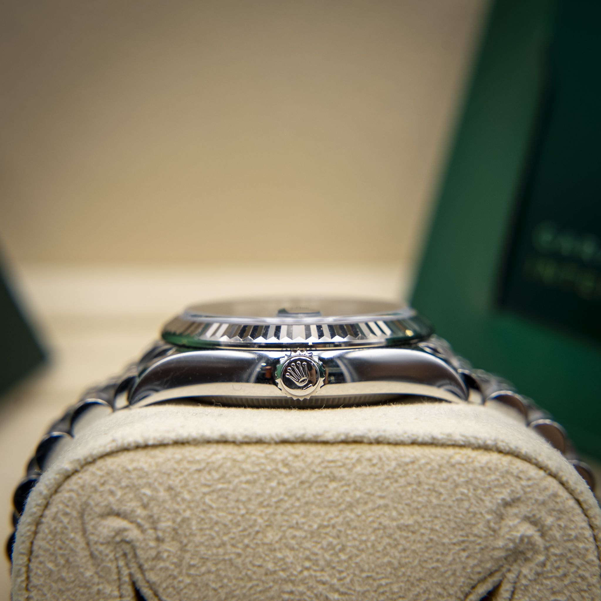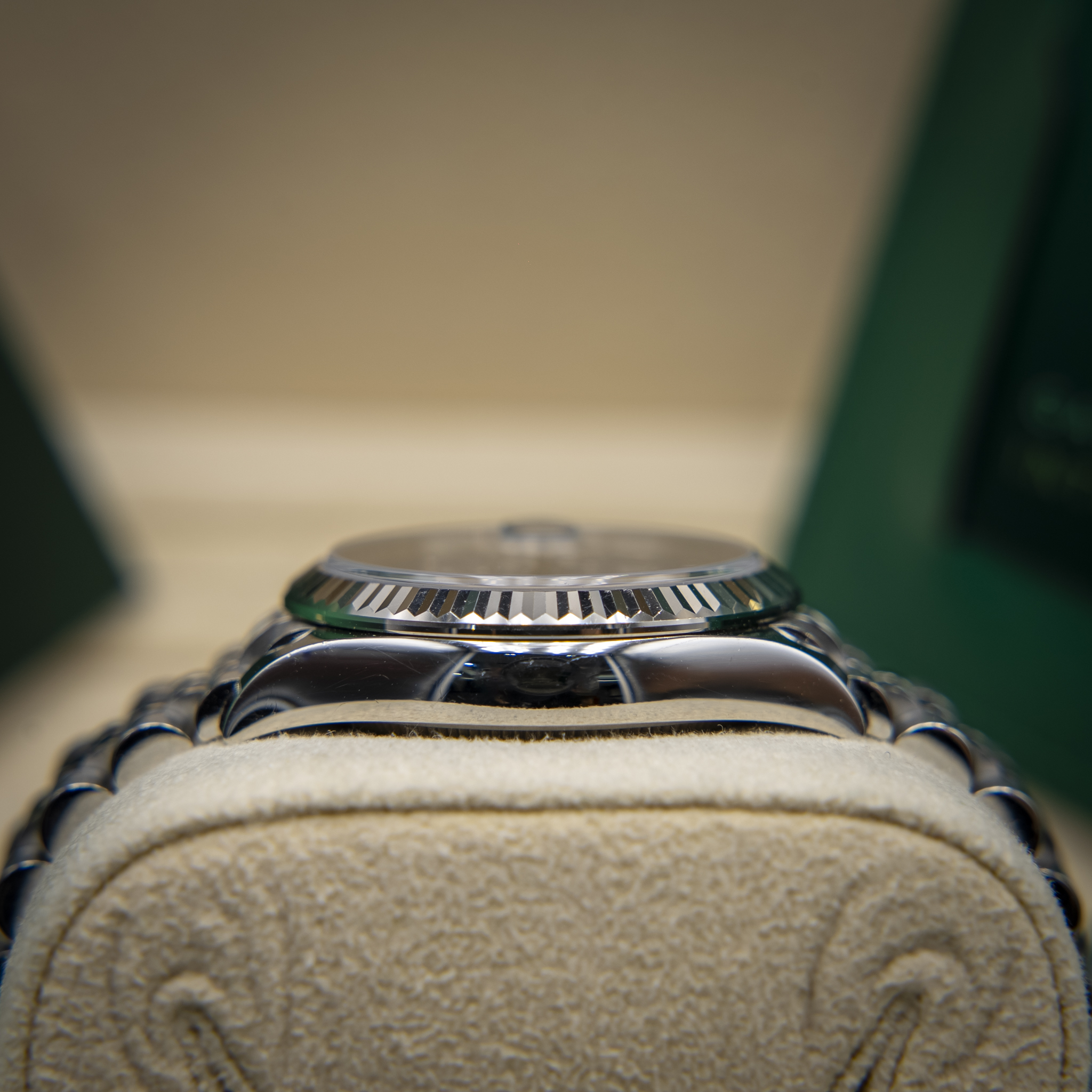 Además, era idéntico al acanalado del fondo de la caja, atornillado a ésta por la misma razón, mediante herramientas específicas de Rolex. Con el tiempo, el estriado se convirtió en un elemento puramente estético, una auténtica característica distintiva de Rolex. En la actualidad, el estriado es una marca de distinción, en oro en este Datejust 31.