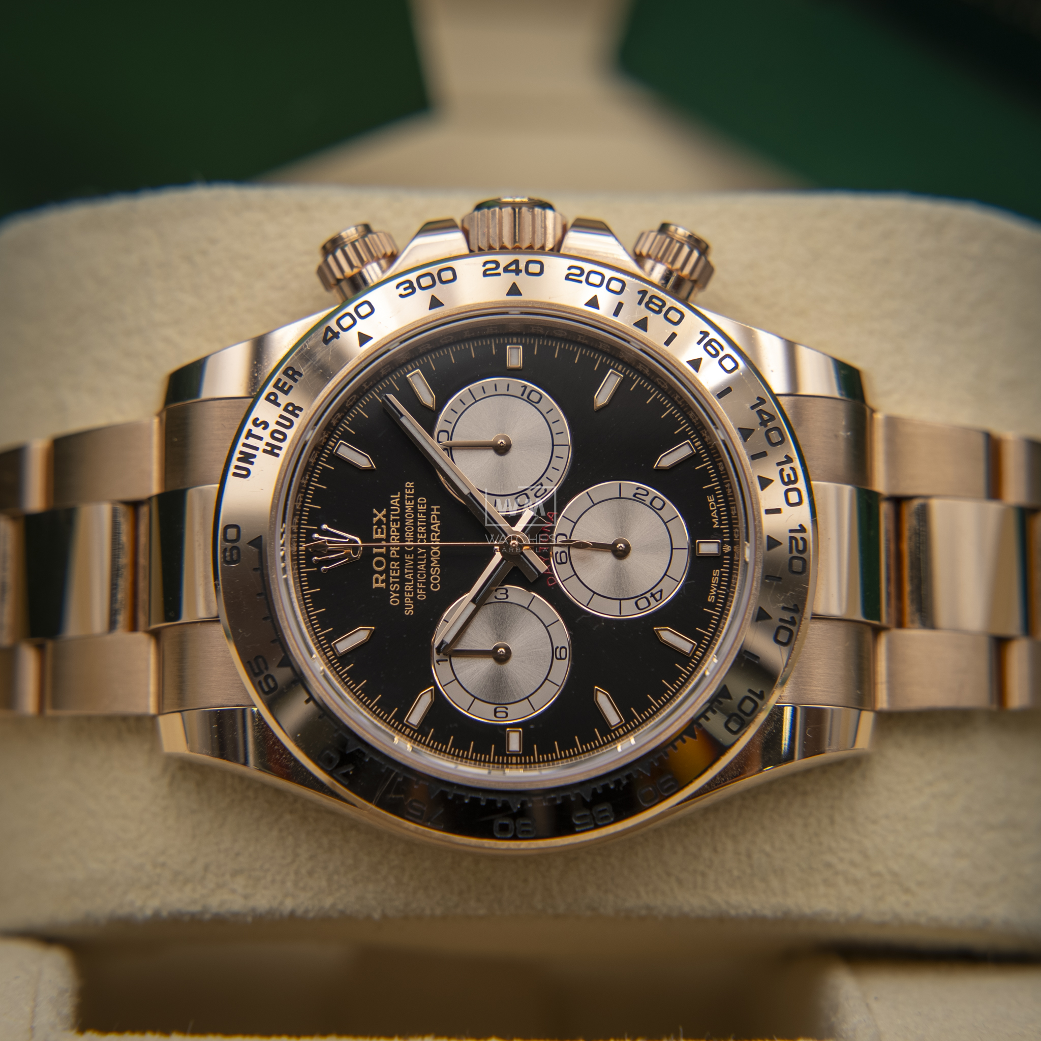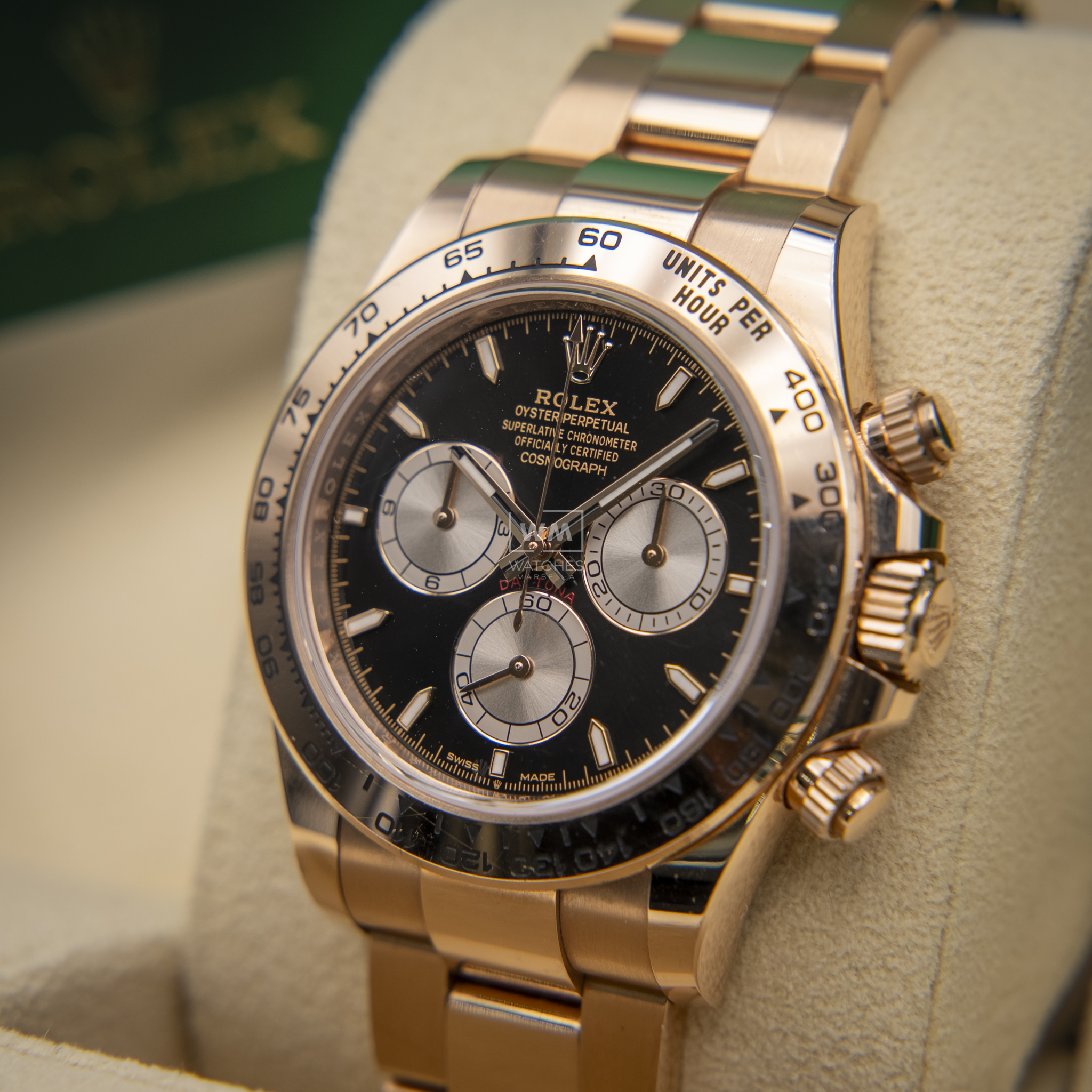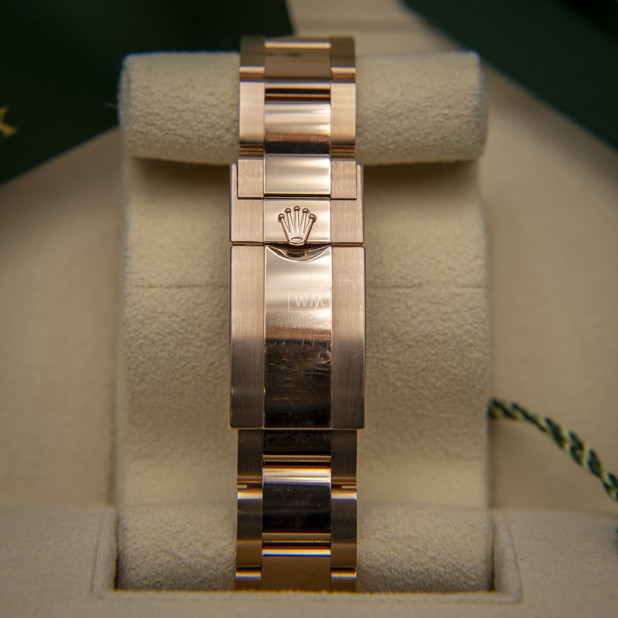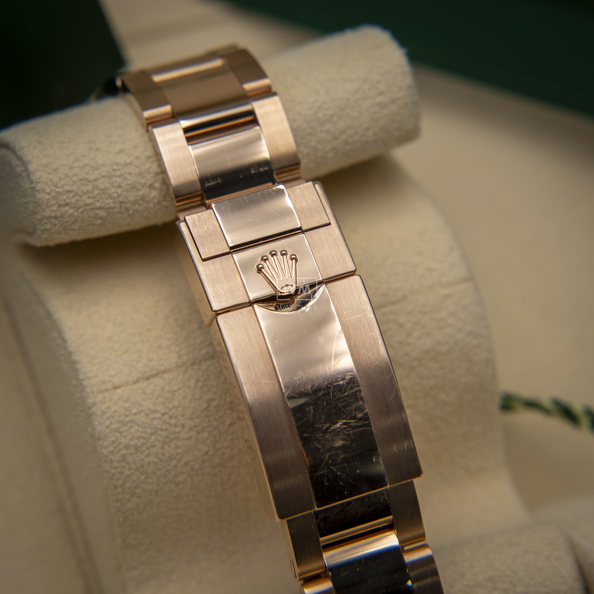 Para preservar la belleza de sus relojes de oro rosa, Rolex creó y patentó una exclusiva aleación de oro rosa de 18 quilates en su propia fundición: oro Everose.