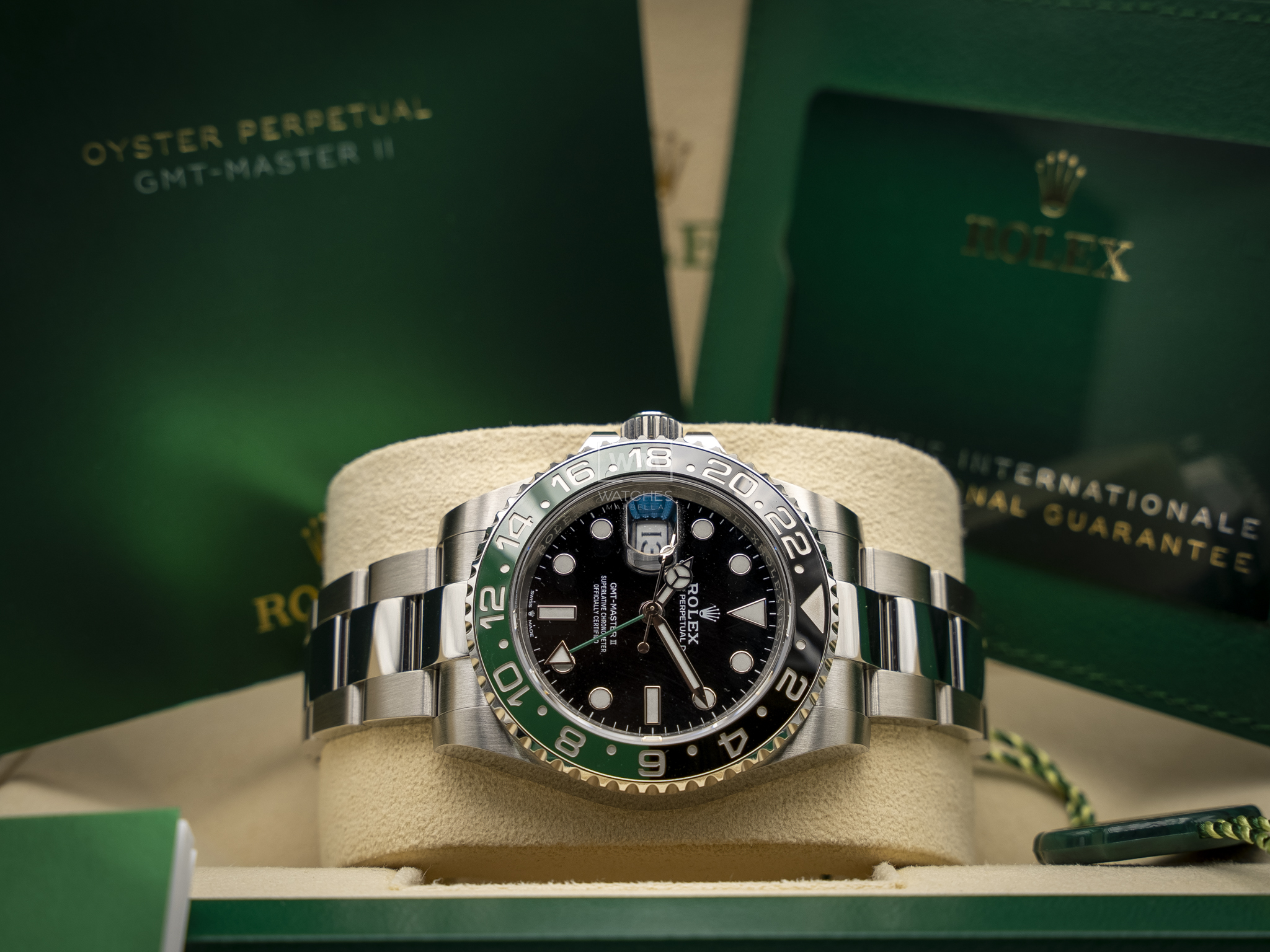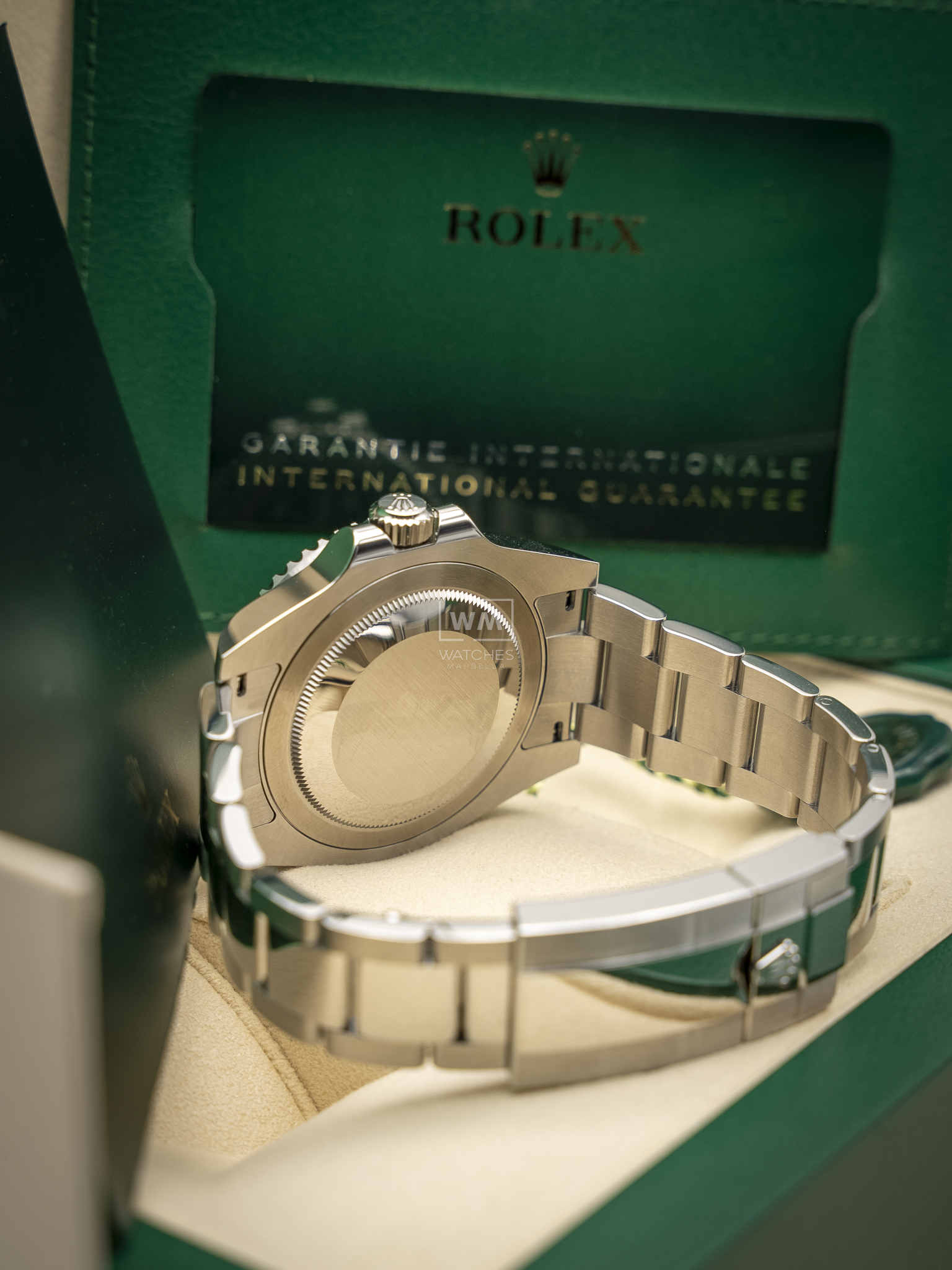 NO vendemos réplicas. Los relojes clasificados como «sin usar» incluirán la caja original, el manual de instrucciones y la tarjeta/certificado de garantía (a menos que se indique lo contrario). Los relojes clasificados como «pre-owned» (de segunda mano) son también verificados como auténticos y en excelente estado de funcionamiento, sin piezas de recambio no originales. Para relojes que no incluyan su caja original, Watches Marbella proporcionará una caja de la tienda.