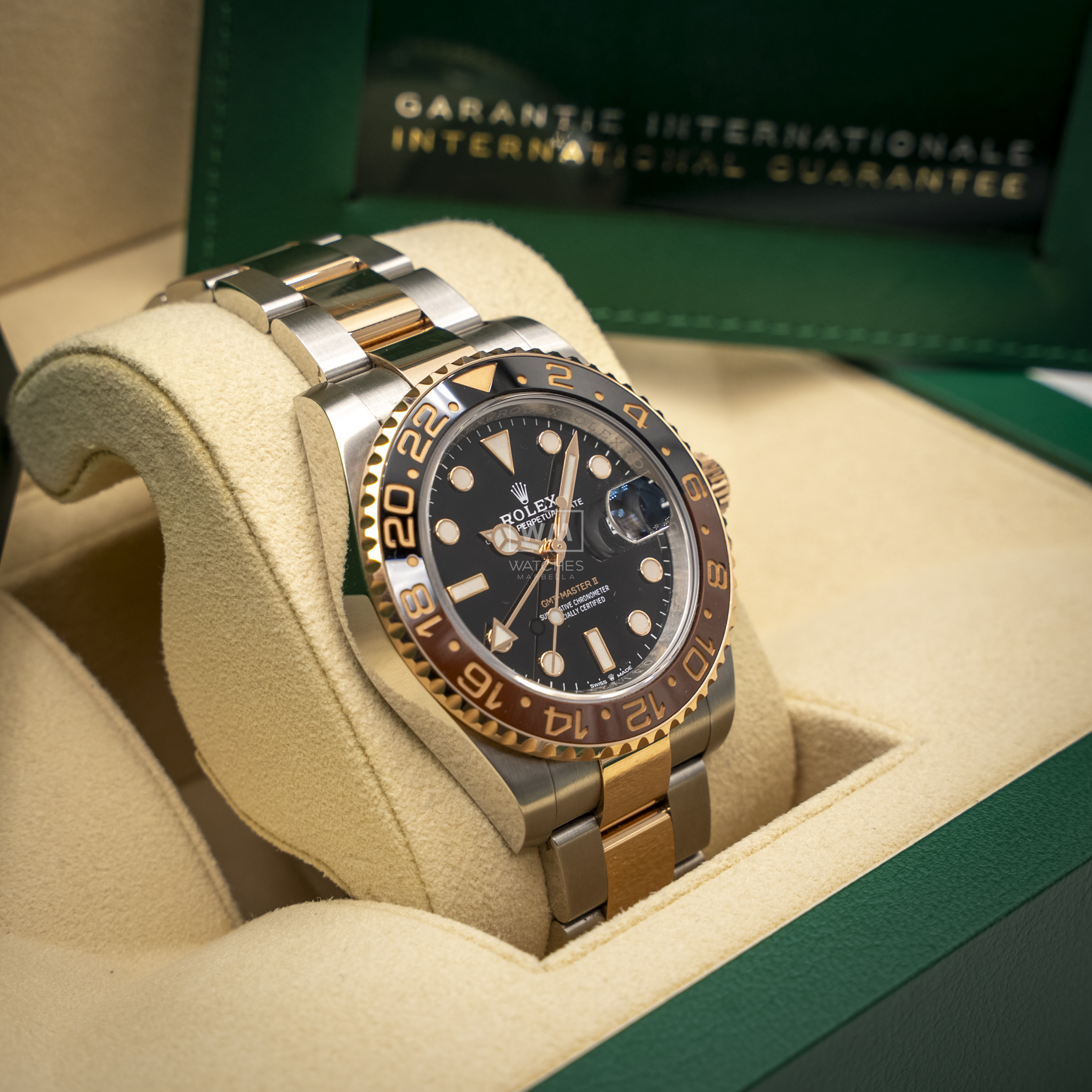 NO vendemos réplicas. Los relojes clasificados como «sin usar» incluirán la caja original, el manual de instrucciones y la tarjeta/certificado de garantía (a menos que se indique lo contrario). Los relojes clasificados como «pre-owned» (de segunda mano) son también verificados como auténticos y en excelente estado de funcionamiento, sin piezas de recambio no originales. Para relojes que no incluyan su caja original, Watches Marbella proporcionará una caja de la tienda.