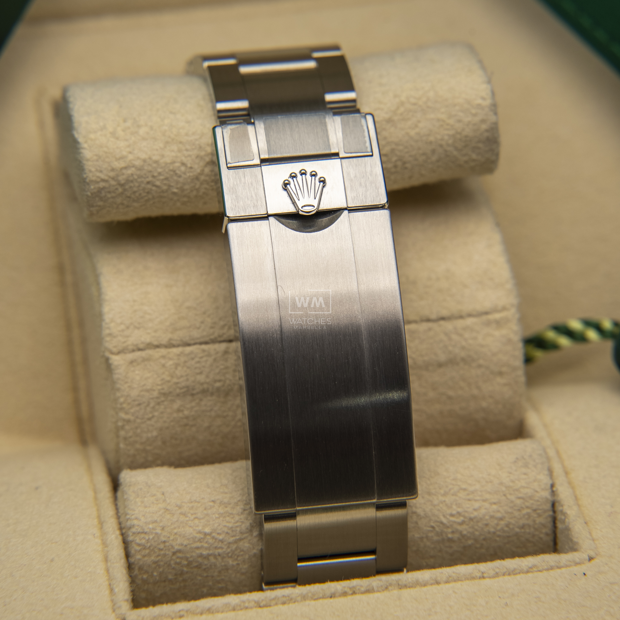 Está equipado con un cierre Oysterlock que evita cualquier apertura accidental, y el ingenioso sistema Glidelock, que permite ajustar con precisión la longitud del brazalete sin necesidad de herramienta alguna. A su vez, permite llevarlo cómodamente sobre un traje de buceo.