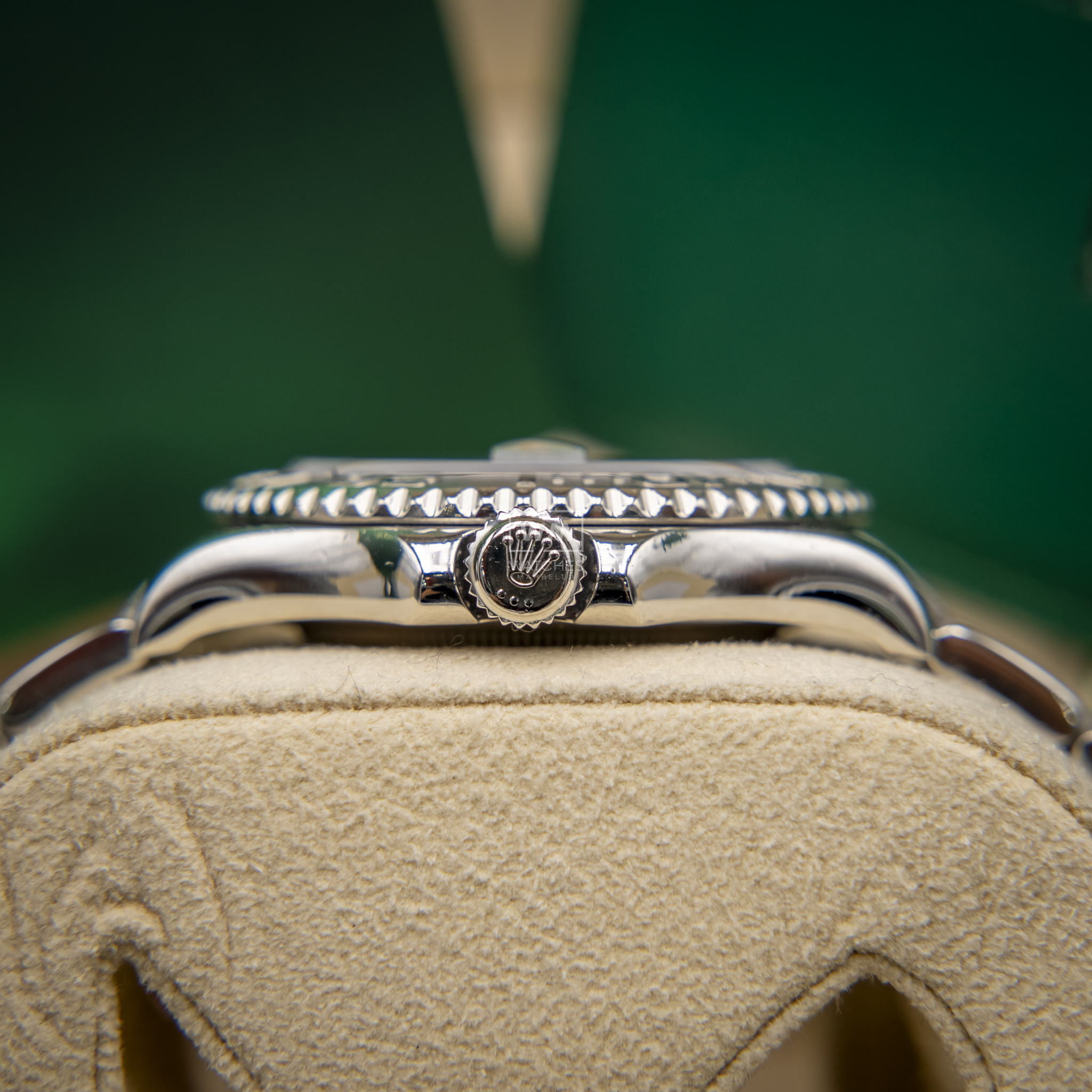En las versiones Rolesium la caja y el brazalete son de robusto acero Oystersteel, pero el bisel es de platino, aportando una blancura plateada y una vibrante luminosidad para una inconfundible sensación de lujo.
