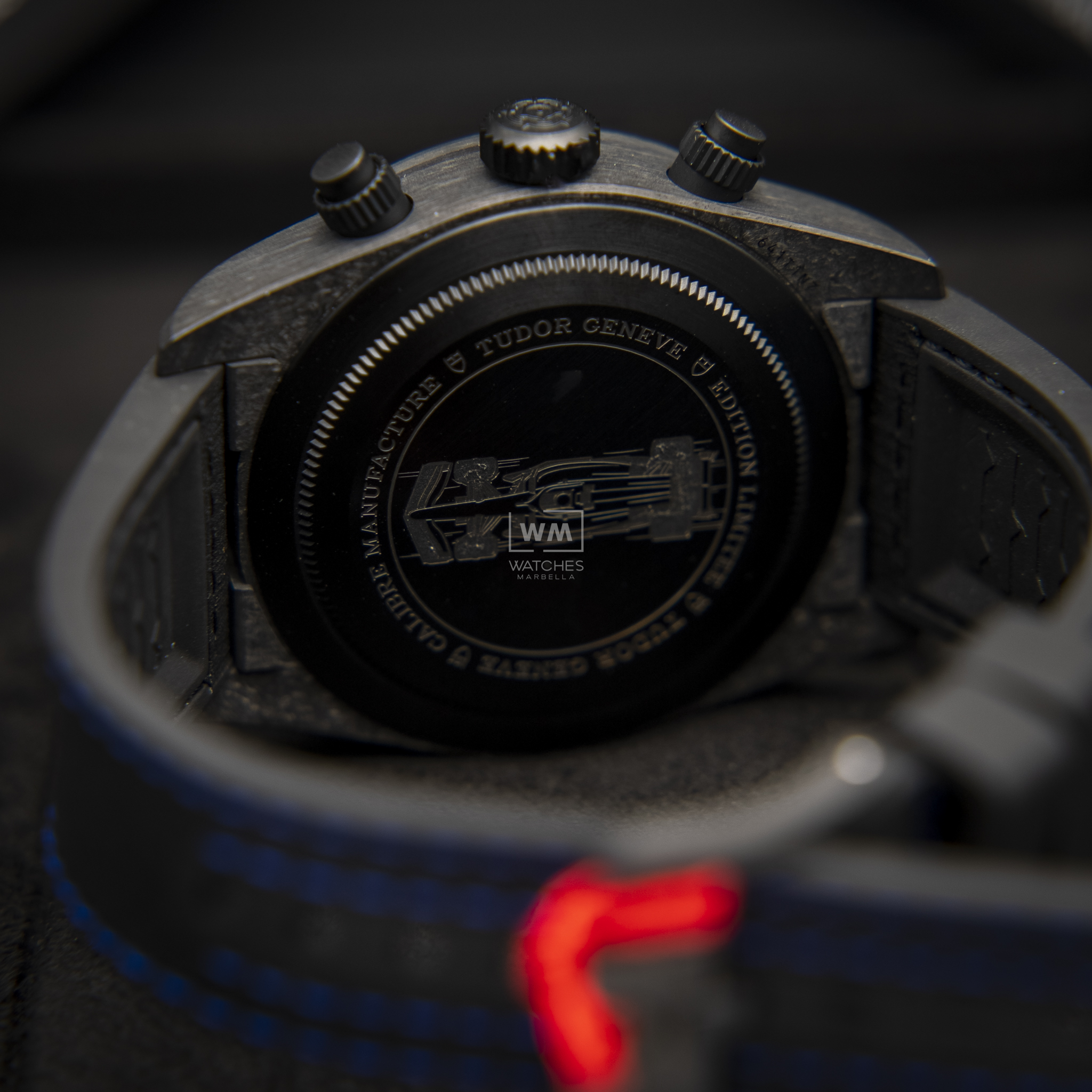 Los códigos estéticos presentes en el reloj reflejan aquellos de los colores de la temporada de 2025, distintivos del coche del Visa Cash App Racing Bulls Formula One Team. Solo se harán 2025 ejemplares del Black Bay Chronograph «Carbon 25», rindiendo homenaje a este importante año en la historia en constante evolución del automovilismo de TUDOR. En el fondo de titanio con acabado PVD se identifica el número individual del reloj.